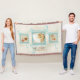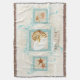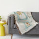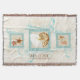 COLOR PALETTE: aqua ocean turquoise blue, sand tan and cream DESIGN COLLECTION: Personalized with "Welcome" or your own message and family name. This design is created from original watercolor illustration artwork by Audrey Jeanne Roberts. A beautiful and intricate trio of three different types of starfish shells interior with it's almost iridescent glow capture in delicate paint layers is laid over a hand painted greek key border in beautiful nautical blues and in the background is a very subtle, tone on tone damask pattern with swirling scrolls. It makes for a very modern, elegant, upscale designed throw blanket for a beautiful interior design decor.