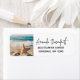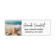 Address labels with a scenic photo. A big starfish set upright on a sandy beach. A beautiful blue sea with waves of white surf in the background.