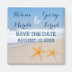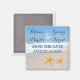 A beautiful photo of a beach with a couple of starfish on the sand adorn this wedding Save the Date magnet. Chose this lovely design for your casual, summer destination seaside wedding.
