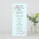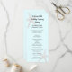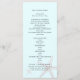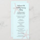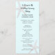 Tall, double-sided, casual beach wedding ceremony program with starfish. Pale blue with grey starfish design printed on tall flat cards. Easily customize both sides with your text in black script for the title and printed fonts for the rest. Add spaces where needed to fill in the wording.