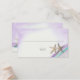 Starfish with turquoise and purple ribbon beach them seating cards to compliment invitation set, customize text as needed.