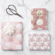 This set of 3 wrapping paper sheets is perfect for coastal holiday gift wrapping. The Christmas beach themed patterns include: sand dollar and starfish with rose gold glitter coral on pink background; white sand dollars on rose gold glitter background; rose gold glitter coral on a white background.