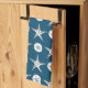 Starfish Sand Dollar Sketch Pattern On Ocean Blue Kitchen Towel