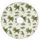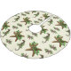 Tropical sea life Christmas tree skirt in ecru / off-white with brown sea stars and seahorses pattern. Green holly sprigs with red berries decorate the starfish and seahorses. Skirts come in three types of fabric and wrap around the tree base without ties or snaps.