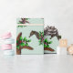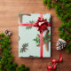 Quality Christmas wrapping paper with starfish and sea horses design. Green holly with red berries decorate brown sea stars and little sea horses. Background colour is muted sage green, or choose another colour.