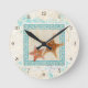 Starfish Sea Shells Ocean Greek Key Pattern Beach Round Clock