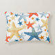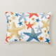 Starfish Seashell Pattern Blue Orange Coastal Accent Pillow