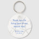 Starfish keychain wedding favours. Personalize with bride and groom names and wedding date. Blue and white beach themed guest thank you favours.