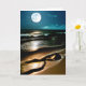 Staring at the moon and thinking about you. Full moon over the ocean waves on a sandy beach.