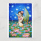Beautiful koi fish mermaid in pond surrounded by lilies and the stars up above.