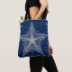 Introducing our premium tote bag, reminiscent of the deepening winter night sky. This elegant design features a large Christmas star pattern with delicate line art on a deep navy blue background. The intricate curves and swirls in white create a mesmerizing effect of dancing stars in the winter sky. Made of thick canvas fabric for durability, the spacious compartments are perfect for everyday use and travel. The practical A4 size fits a laptop or book comfortably, making it perfect for commuting to work or school. The sturdy stitching and sturdy handles ensure that you can carry heavy loads with confidence, while the inside zippered pocket keeps your belongings organized. This stylish tote bag is perfect for the winter season, and will elevate your fashion sense.