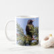 This coffee mug features a photograph of a starling sitting in a spruce tree. The bird has a beady eye and its feathers glisten in the late afternoon sunshine. The beautiful blue sky provides a stunning background. There is cstomizable text on the other side of the mug, allowing you to turn this mug into a fantastic personalized gift for a bird watcher or animal lover you know. The design is shown here on a basic white coffee mug, but is also available on lots of other styles and colours of mugs.