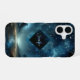 breathtaking cosmic scene featuring deep blue swirling clouds, glowing constellations, and a luminous cityscape below.