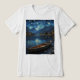 A tranquil acrylic painting capturing a serene fishing boat nestled on the edge of a calm lake under a vast, starry night sky. The shimmering water reflects the celestial brilliance, blending deep blues, whites, and hints of grays. Soft brushstrokes bring life to the rippling waves, while the boat, silhouetted against the cosmic glow, becomes a focal point of solitude and wonder. The scene evokes a sense of quiet connection between the earthly and the infinite.