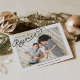 Elegant and modern holiday photo card features your favourite horizontal photo bordered by a thin band of black on a white background, with "Rejoice" in black handwritten style monoline script typography, accented with hand drawn stars in faux gold. Personalize with your custom greeting and name in a mix of italic and block lettering. Card reverses to a snowfall pattern in white on black.NOTE: No gold foil will be printed on this product. This design has a printed effect that uses subtle colour variations to mimic gold foil.