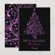 Starry Christmas Tree Black Pink Metallic Look Holiday Card