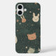 De mignons visages d'animaux (lapin, chat, ours, etc.) éparpillés parmi les étoiles et les constellations sur un arrière - plan sombre. Enfants et fantaisie.