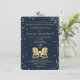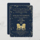 Sparkling gold stars design and Adirondack beach chairs, romantic and almost fairy tale like evening on the beach. Navy blue and gold enchanted beach wedding invitation.