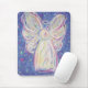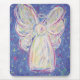 The art shows a soft pastel angel against a soft blue starry night background. The image was initially painted with acrylic and then finished in pastel to create soft luminous colour.