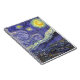 Starry Night by Vincent van Gogh is a vintage fine art post impressionism landscape cityscape painting featuring a view of Saint Remy, France from van Gogh's asylum. The night sky is swirling with clouds with a bright crescent moon and shining stars over the quaint village. Starry Night is probably van Gogh's most famous painting and was painted during the day from memory.