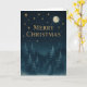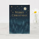 Send elegant holiday wishes with this starry night Christmas card. A glowing full moon and golden stars shine above a snowy pine forest, creating a magical winter scene.