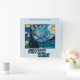A wall clock featuring artwork inspired by Van Gogh's Starry Night.