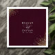 Enhance your wedding reception with these elegant napkins featuring a deep crimson background and a starry night design. The rich colours and shimmering details add a sophisticated touch to your table settings, perfect for a night-time or celestial-themed wedding. Personalize with the couple's names and wedding date for a unique touch. High-quality print ensures vibrant colours and intricate details, making your special day unforgettable.