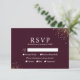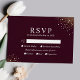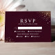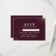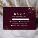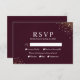 The 'Starry Night Deep Crimson Wedding RSVP Card' seamlessly blends celestial elegance with the formal request of your guests' attendance. Set against a deep crimson background, the golden star dust sprinkled along the edges evokes the beauty of a night sky. The card provides a clear and simple layout for guests to indicate their attendance and meal preference, maintaining both the sophistication and the modern essence of your wedding theme. This RSVP card not only serves its practical purpose but also complements the stellar aesthetic of your wedding stationery, ensuring a consistent and magical experience from the first invitation to the final thank you note.