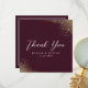 The 'Starry Night Deep Crimson Wedding Thank You Card' is the epitome of grace and gratitude. With a luxurious, deep crimson hue and sparkling golden accents that recall a celestial celebration, this card is a beautiful way to express your thanks. The shimmering details suggest a night sky filled with stars, adding an element of cosmic wonder to your message of appreciation. These cards are not only a courteous gesture but also a lasting memento of your special day, leaving a warm and stellar impression on all who receive them.