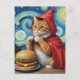 Starry Night Ginger Cat with Cheeseburger Postcard