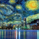 "Starry Night in Famous Waves" Canvas Print with by Vincent van Gogh.