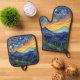 Crafted from high-quality, heat-resistant materials, these pieces ensure both safety and style. The intricate design, featuring deep blues and vibrant yellows, captures the mesmerizing beauty of Van Gogh’s masterpiece, making each cooking endeavour feel like a creative journey. Whether you’re a seasoned chef or a home-cooking enthusiast, this elegant set adds a touch of artistic flair to your culinary adventures, making it the perfect gift for art lovers and kitchen connoisseurs alike. Transform everyday cooking into a starry night of inspiration and creativity with this beautiful oven mitt and pot holder set.