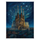 Experience two masterpieces in one with this unique art print. The iconic silhouette of Gaudi's Sagrada Familia is reimagined under a swirling, vibrant sky inspired by Van Gogh's "Starry Night." This artistic fusion creates a truly magical view of Barcelona, perfect for adding creative flair to your home decor or as a thoughtful gift for any art and travel lover.