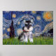 Starry Night by Vincent Van Gogh, one of the most loved masterpieces in the world, has been adapted here to include a Schnauzer puppy with a red collar and gold heart tag.