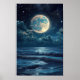 Starry Night Sky Full Moon Sea Realistic Art Poste Poster