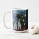 Beautiful and inspiring night sky with a flying bird and two tiny houses. Design appears on both sides of the mug.