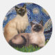 Starry Night - Two Siamese cats (Choc Pt) Classic Round Sticker