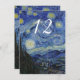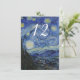 Colourful wedding reception table number card, with the fine art painting of Vincent van Gough's Starry Night. Personalize the white number for each table at your reception. Matching wedding products are available.