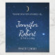 This beautiful and elegant design, called Starry Night Wedding, has a beautiful night time inspired design. The background is  a beautiful gradient from royal blue to navy blue giving a milky way galaxy effect and has stars and a crescent moon. Your text is centred in white. Perfect for an outdoor themed style, evening wedding or rustic chic wedding. This set has invitations, save the date cards, response cards, thank you cards, table number tent cards, envelope seals, wine labels, binders, return address labels and many more day-of wedding stationery pieces, favours, and gifts available. Use the envelope seal stickers for any of your DIY gifts - these are available in both large and small sizes! All elements are printed on our high quality products, they do not include any real gold, jewels, embossing, or other textile elements. All designs are copyright Noteable Expressions, Inc. All rights reserved.