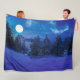 Starry night with full moon in forest fleece blanket
