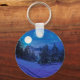 Magic winter night with full moon and frozen covered in snow fir and spruce trees in winter. Starry night. Snowy forest at night in moonlight.