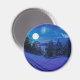 Magic winter night with full moon and frozen covered in snow fir and spruce trees in winter. Starry night. Snowy forest at night in moonlight.