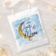 Baby boy shower favour bag features a dreamy cloudy blue watercolor background filled with sparkly gold glitter stars and a gold glitter shadow moon. Customize to your liking.