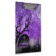 Starry purple magical night with full moon silhouette of gnarly dead tree, headstone, grass and several spiderwebs. Customize text on gravestone. Makes a great clipboard for young and old!