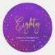 This elegant round 80th birthday party sticker features a border of stars and the word "Eighty" in faux gold against a purple watercolor background. Check out the matching invitation and other items here https://www.zazzle.com/collections/elegant_starry_purple_watercolor_celebrations-119469232199993091?rf=238364477188679314