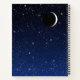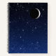Spiral notebook with an image of a starry night sky, in a gradient of deep midnight blue to black, with a crescent moon