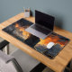 Une jeune fille regarde un coucher de soleil orange vif éclairer un ciel étoilé au feu. Les nuages se projettent à travers l'horizon au-dessus d'une ville fantastique avec ponts, tours et fenêtres éclairées. La fille est assise sur une colline rocheuse avec son dos au spectateur, ses cheveux bruns qui soufflent dans le vent. Le mouvement dans cette image est attirant et une personne ne peut s'empêcher d'imaginer son histoire.