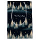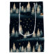 "Golden Whisper of the Woods" illustrates a winter forest under starlight, with trees covered in snow glowing softly in gold. The scene, featuring a cozy cabin and the quiet night, displays a harmonious blend of light and shadow. This artwork evokes a magical sense of peace and enchantment, inviting viewers to appreciate the serene beauty of a starry winter night and the subtle splendour of nature.