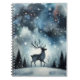 A graceful stag stands beneath a shimmering winter sky, framed by snow-dusted pines and delicate bare trees. The deep midnight blues fade into frosty whites, while stars and snowflakes scatter like jewels across the heavens. This dreamy woodland scene captures the quiet wonder of a snowy night, blending cottagecore warmth with celestial magic. Perfect for evoking winter’s stillness and the beauty of nature’s rhythm. AI generated artwork.