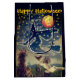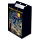 This Halloween Gift Bag shows a witch outlined in stars flying across the Halloween night sky over fields of pumpkins, with black cat and owl. The design is from a 1913 Halloween card.